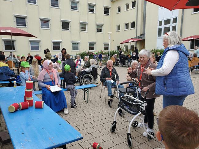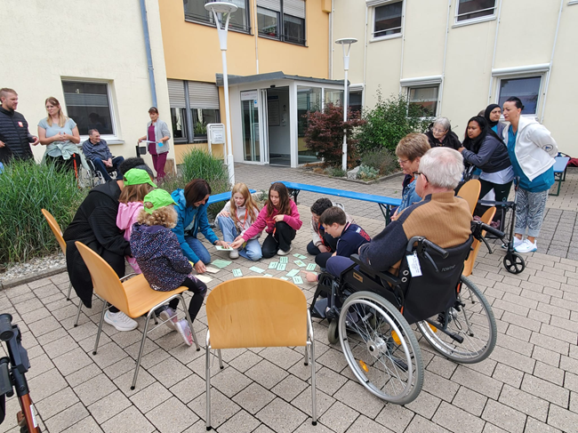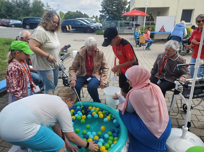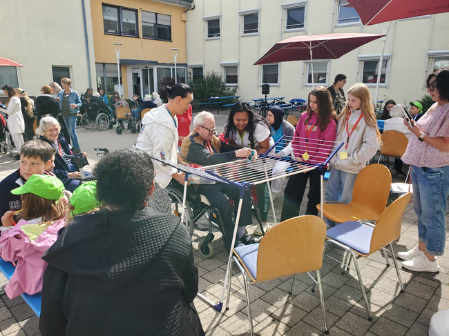 An verschiedenen Stationen – darunter Sockenaufhängen, Liederquiz, Dosenwerfen und viele weitere kreative Herausforderungen – mussten die gemischten Teams aus Jung und Alt ihr Geschick und vor allem ihren Teamgeist unter Beweis stellen. Anfangs herrschte in allen Altersgruppen noch eine gewisse Zurückhaltung und Skepsis, doch schon bald war das Eis gebrochen. Lachen, Anfeuern und gegenseitige Unterstützung bestimmten das Bild.