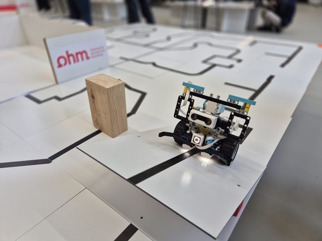 - Dabei muss er Hindernisse wie Bodenwellen, Lücken in der Linie und Rampen überwinden sowie blockierende Holzquader umfahren.