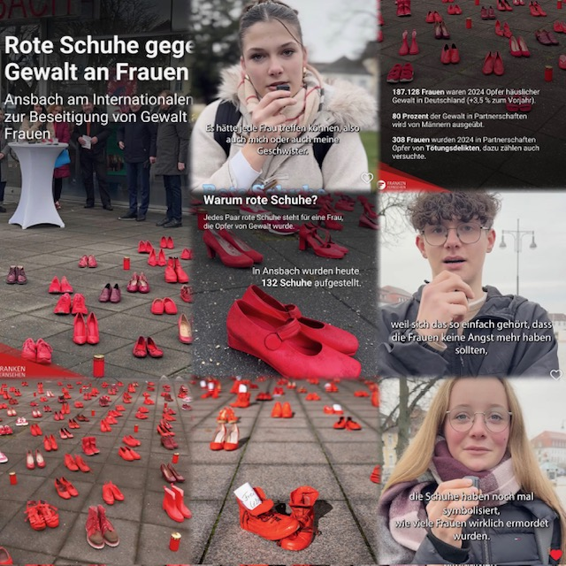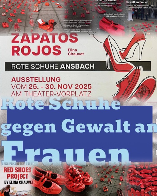 Mit bewegenden Bildern und einer eindringlichen Botschaft wurde am Platz vor dem Theater Ansbach ein Kunstprojekt präsentiert, das weit über die Stadtgrenzen hinaus Wirkung zeigt. 132 rote Schuhpaare erinnern an 132 Frauen, die im Jahr 2024 in Deutschland durch Partnerschafts- oder Expartnergewalt ihr Leben verloren haben. „Zapatos Rojos“ – Rote Schuhe – heißt die internationale Kunstinstallation der mexikanischen Künstlerin Elina Chauvet, die seit 2009 weltweit auf Gewalt an Frauen aufmerksam macht.