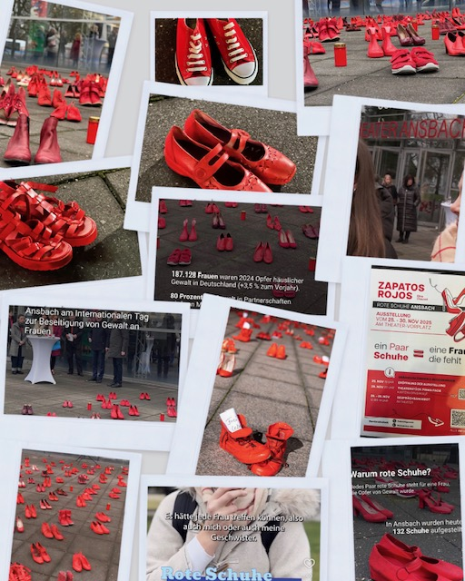 Bei Wind und Wetter stehen die roten Schuhe noch bis Montag sichtbar vor dem Theater. Danach ziehen sie weiter – als mobile Mahnzeichen in Rathäuser, Schulen, Kirchen und weitere Einrichtungen im Landkreis und der Stadt Ansbach. Während der Eröffnung betonten Landrat Dr. Jürgen Ludwig und Oberbürgermeister Thomas Deffner die Bedeutung des Projekts: Das Schweigen brechen, sichtbar machen, hinsehen – genau dafür stehen die roten Schuhe. Und genau dafür steht auch das Engagement unserer Schule.